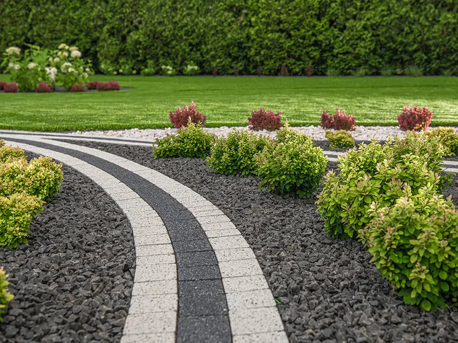 • Gartenwege mit Kies- oder Splittbelag